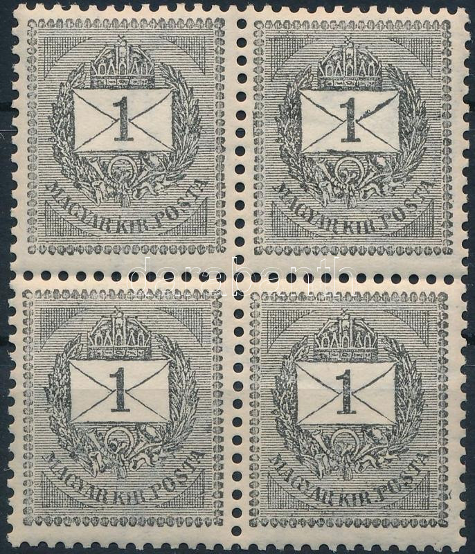 1898 1kr négyestömb enyhén elfogazva, 12 : 11 3/4 fogazással, POSTATISZTA, luxus minőségben!
