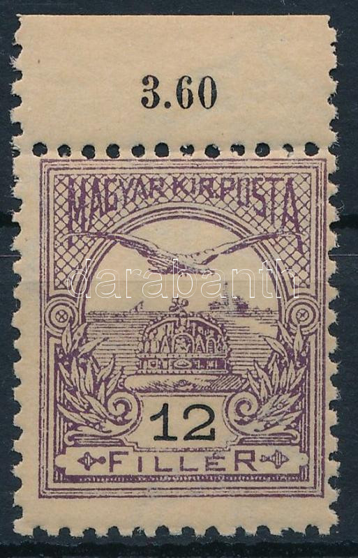 1904 Turul 12f postatiszta ívszéli bélyeg, luxus minőségben