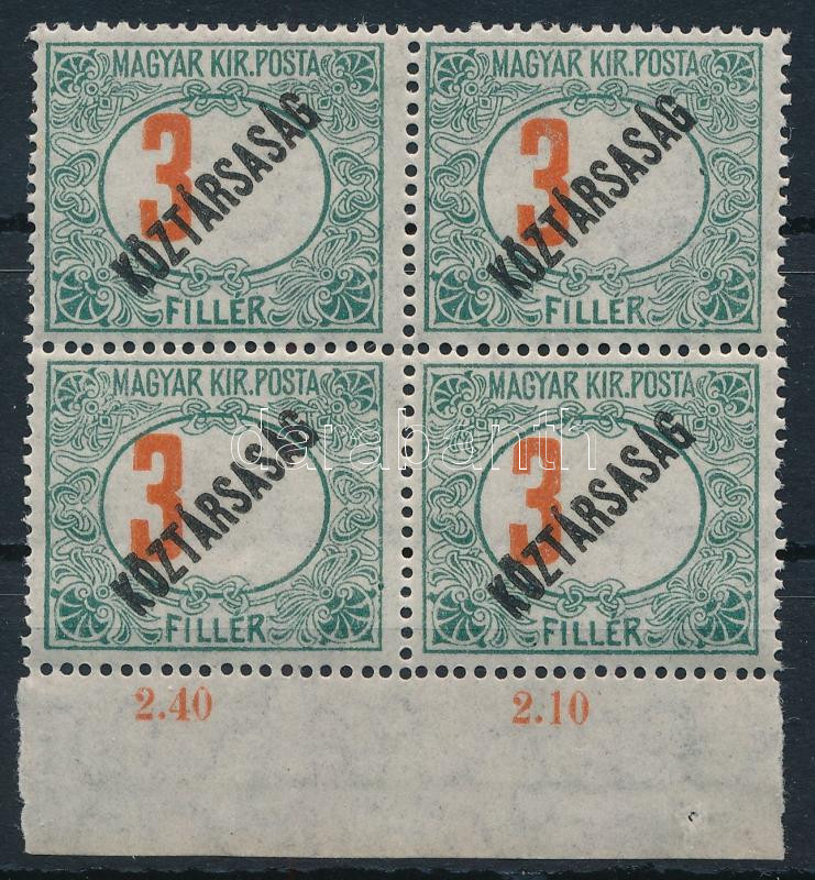 1919 Köztársaság portó 3f négyestömb látványosan elcsúszott értékszámokkal