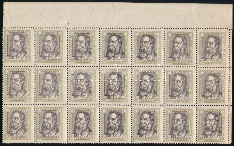 1919 Magyar Tanácsköztársasági arcképek 80f ívsarki 21-es tömbben, álló vízjellel (168.000)