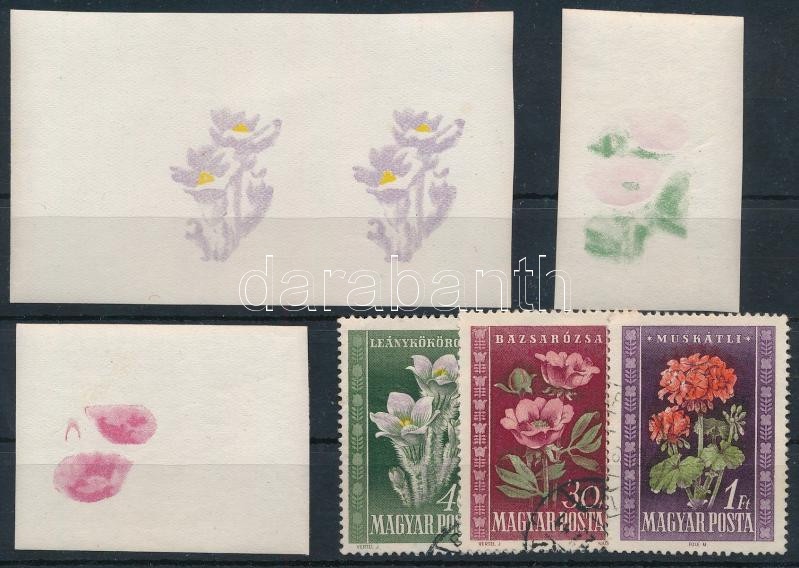 1950 Virág 3 db vágott fázisnyomat + támpéldányok