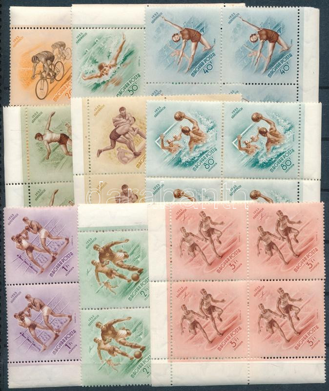 1953 Népstadion sor 5Ft nélkül négyes tömbökben, a 80f és 3Ft számvízjellel (34.000)