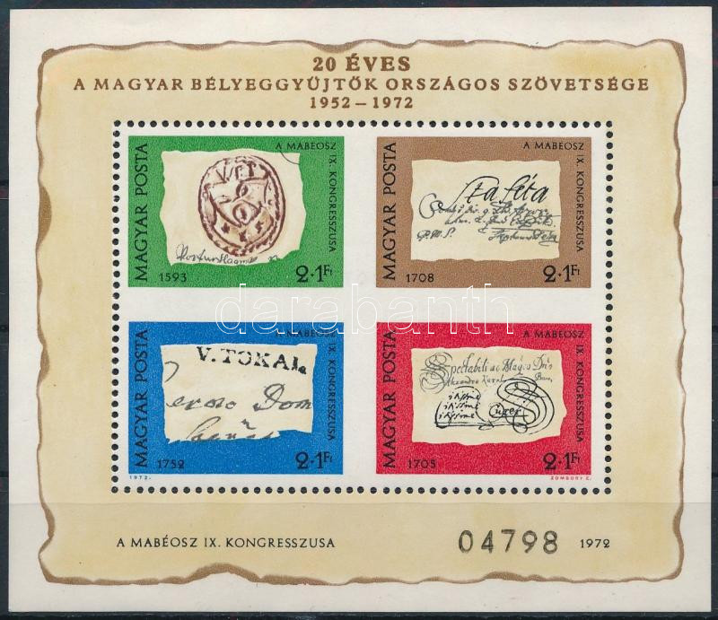1972 Bélyegnap blokk ajándék változat (régi katalógus ára 30.000 Ft, az új katalógusban nem szerepel)
