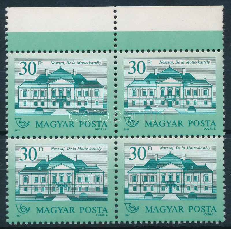 1987 Kastélyok 30Ft ívszéli négyestömb, matt-fényes, 12 : 11 1/2 fogazás (20.000)