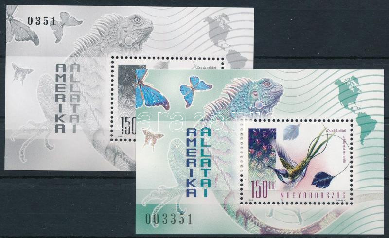 1998 Földrészek állatai II. - Amerika feketenyomat blokk fekete sorszámmal + normál blokk, az utolsó 3 számjegy megegyezik (25.000)
