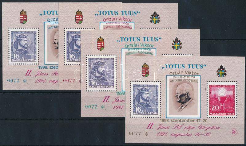 1998 Orbán Viktor vatikáni látogatása 4 db-os emlékív garnitúra, azonos 0077 sorszámmal (22.000)