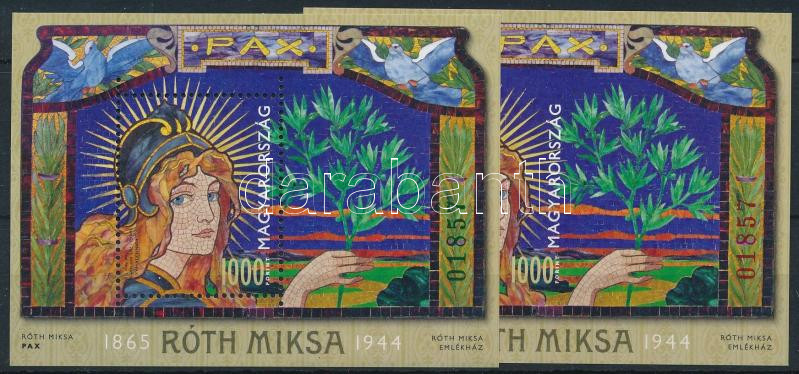 2015 Jeles magyarok (VII.) - 150 éve született Róth Miksa túlfogazott és vágott blokk azonos zöld és piros sorszámmal (27.000)