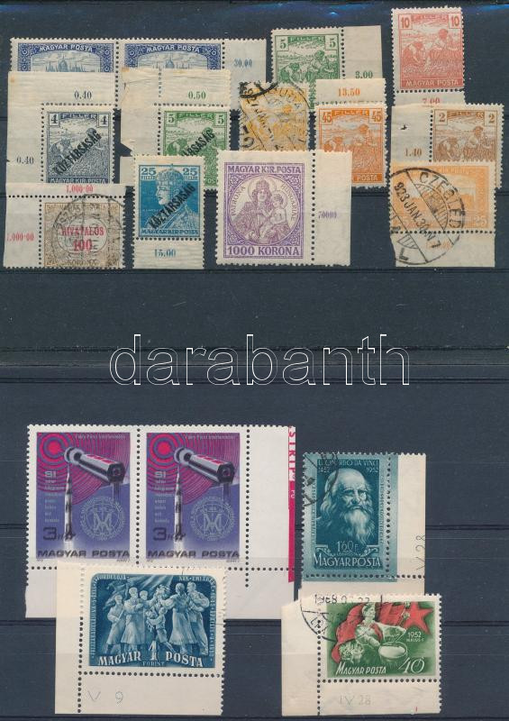 16 db klf bélyeg ívszéli összegző számokkal és egyéb nyomdatechnikai jelzésekkel, 2 stecklapon
