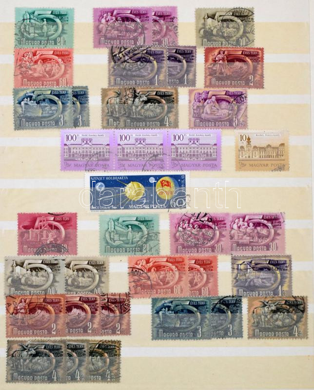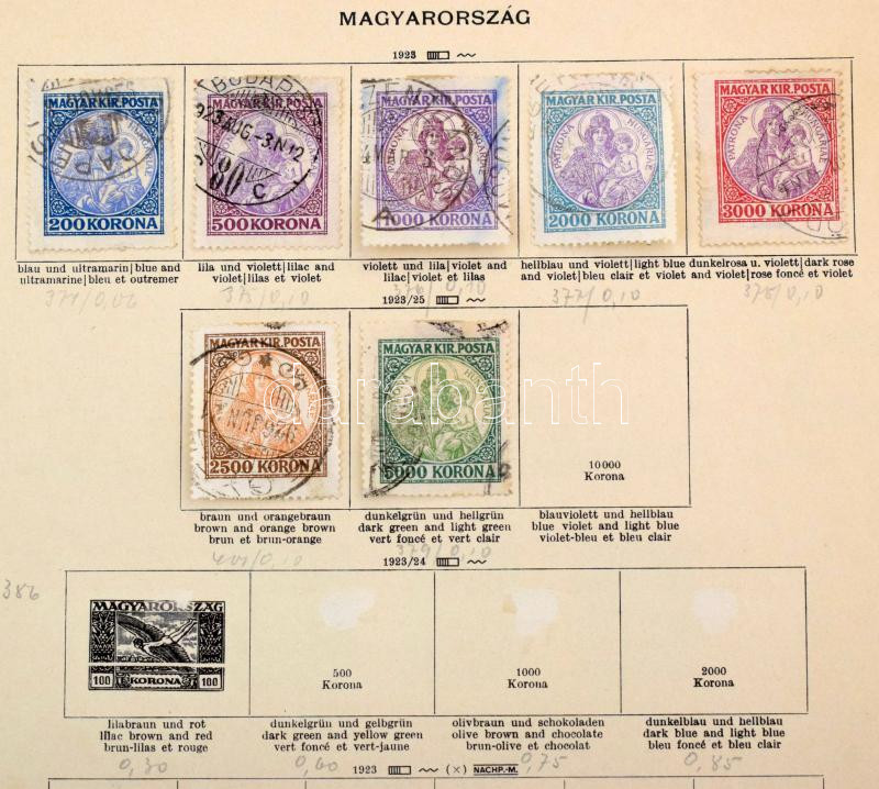 1918-1963 Bélyegek, sorok régi albumlapokon, jobb kiadásokkal + 1945-1962 Régi magyar bélyegalbum kevés bélyeggel + 4 db A/4 berakólapon érdekességek, változatok, eltérések bélyegeken
