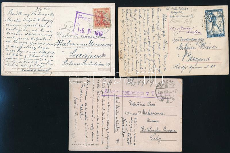 1919 3 db képeslap megszállt területekről túlélő magyar postai hely-kelet bélyegzésekkel