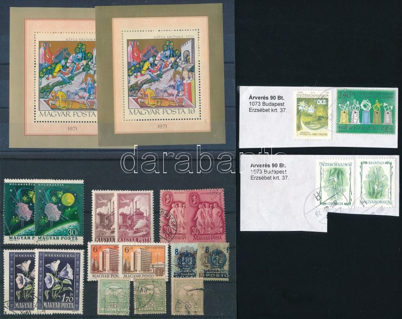 1945 előtti és utáni 15 db bélyeg színváltozatokban, közte 2 db blokk és 2 db kivágás