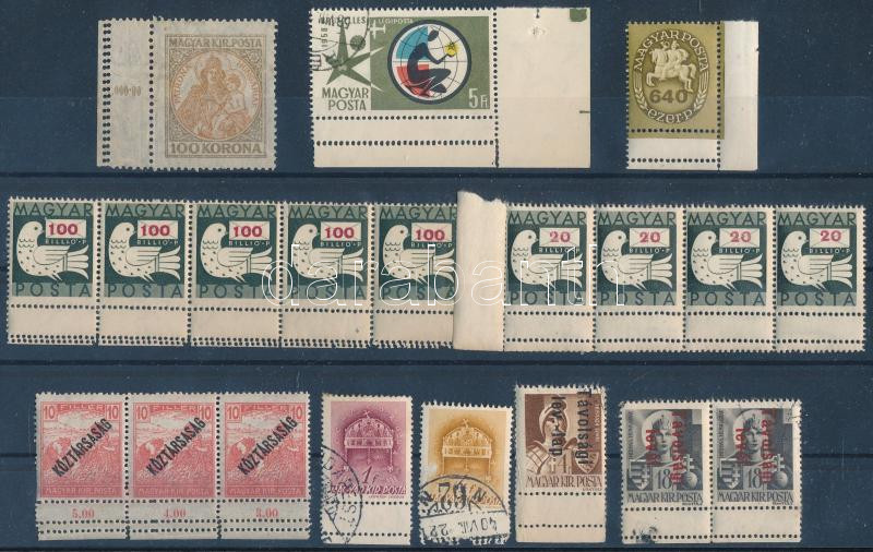 1945 előtti és utáni bélyegek az ívszélen kettős fogazással, stecklapon
