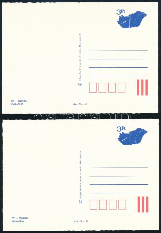 2 db modern 3Ft díjjegyes képeslap a "MAGYAR POSTA" felirat nélkül
