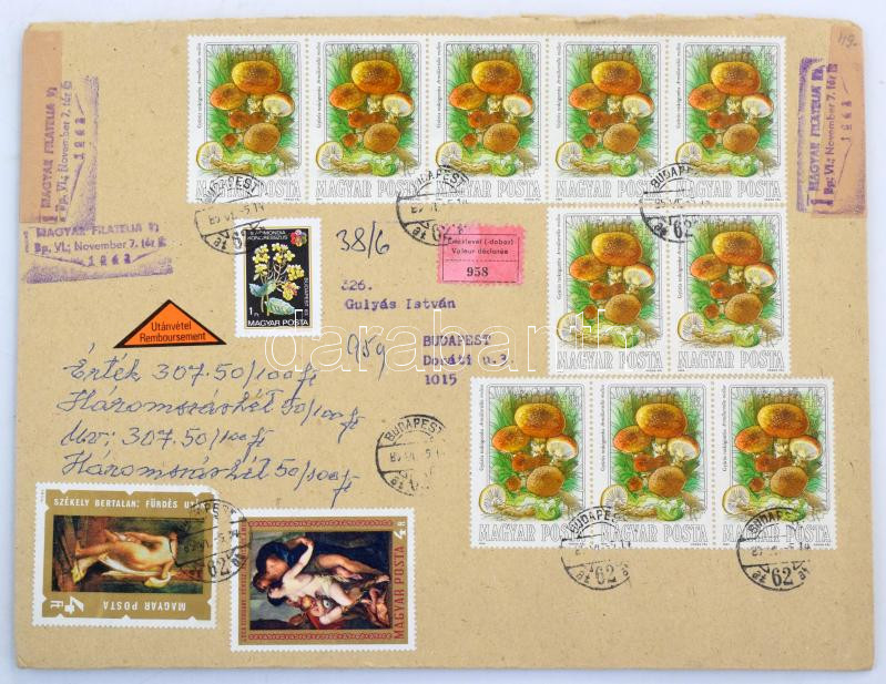 36 db nagyalakú, utánvételes értéklevél, változatos bérmentesítésekkel