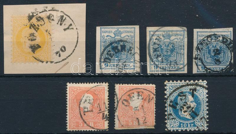 7 db klasszikus bélyeg olvasható bélyegzésekkel stecklapon