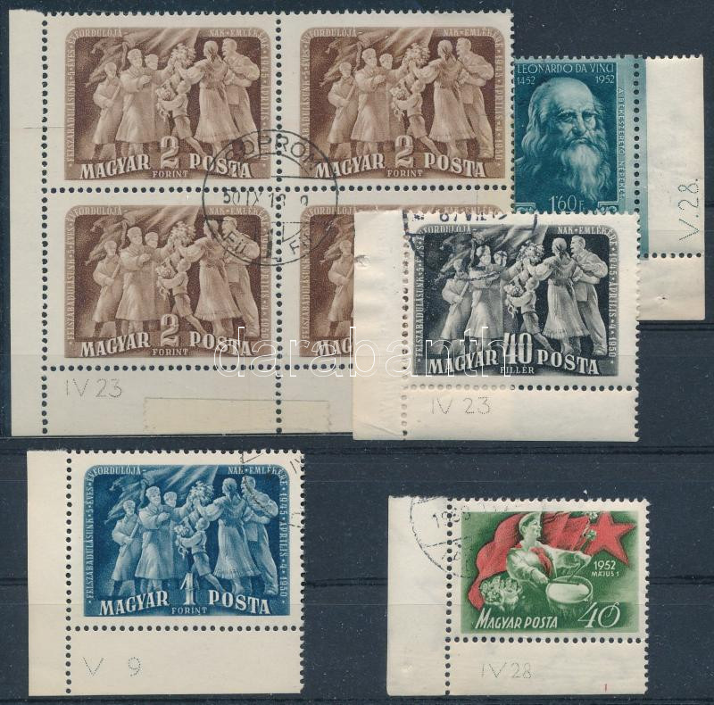 8 db 1945 utáni bélyeg az ívszéleken dátumjelzéssel