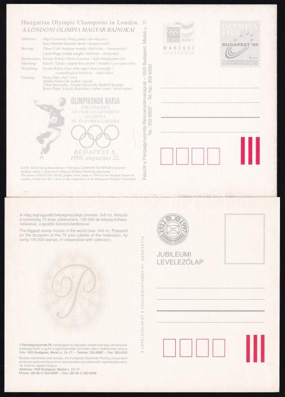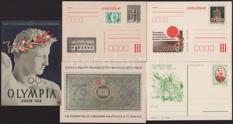 Használatlan lapok: 6 db Londoni Olimpiai képeslap + 6 db MABÉOSZ képeslap + 36 db használatlan díjjegyes levelezőlap