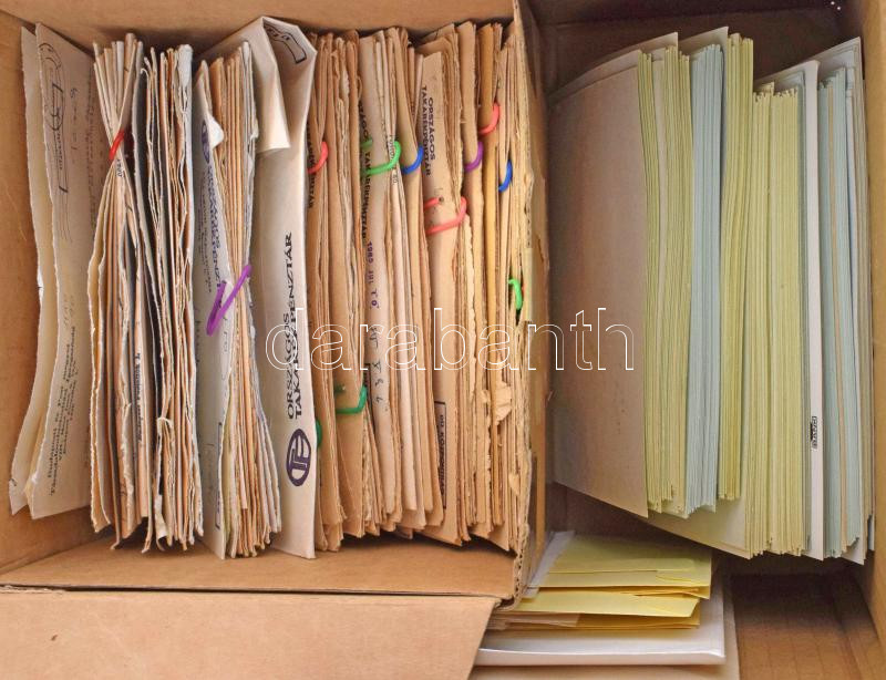 Magyar bélyeg újdonságok köri újdonság szolgálatból az 1980-as évektől kb. 1993-ig borítékokban, hozzá OTP emléklapok, legalább 140 db több évből, dobozban