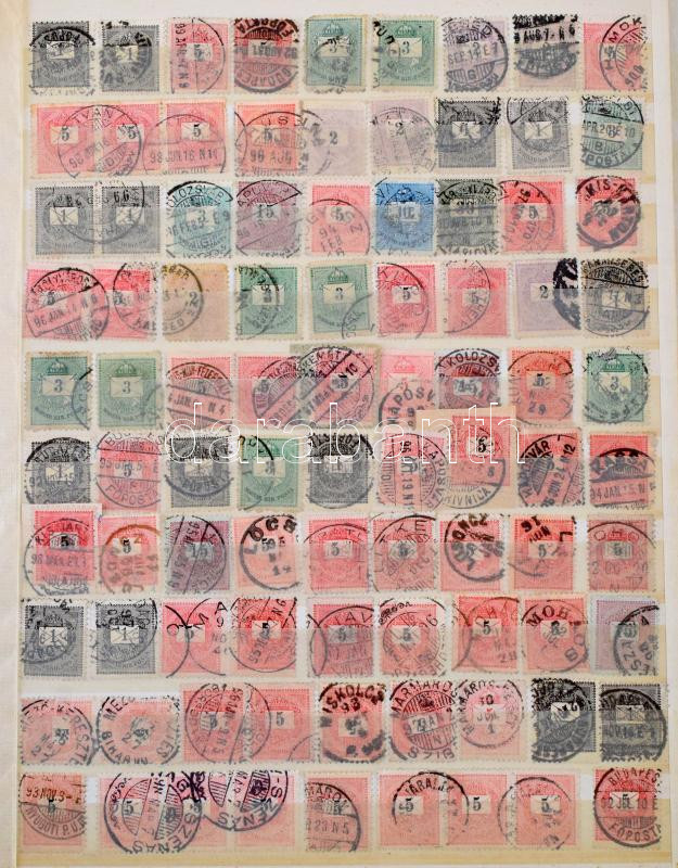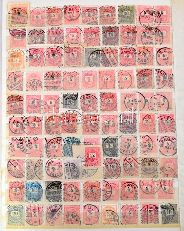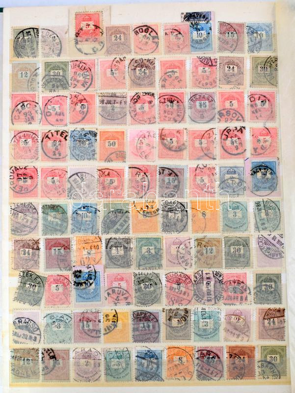 Rendezetlen bélyegzett Krajcáros tétel kb 540 bélyeg A/4-es berakó 6 oldalán + Postatakarék és Sürgős bélyegek sok példányban