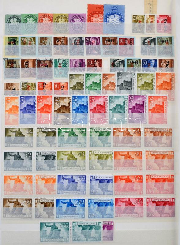 Részben 1950 előtti magyar bélyegek, köztük teljes sorok is, 16 lapos, A/4-es berakó kb 20 oldalán, ritkásan rakva