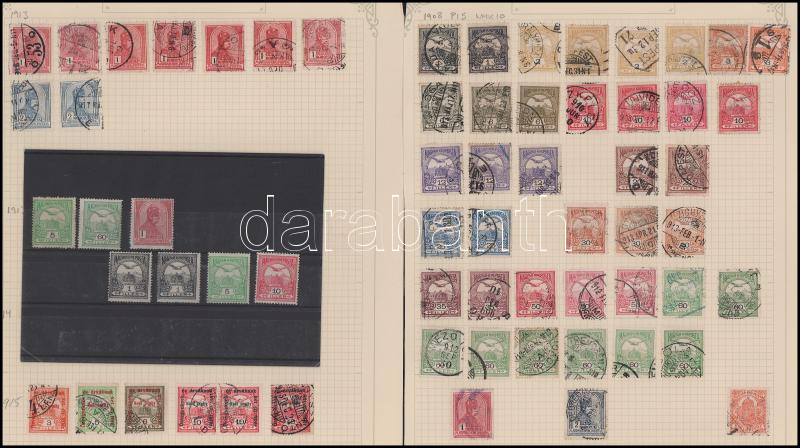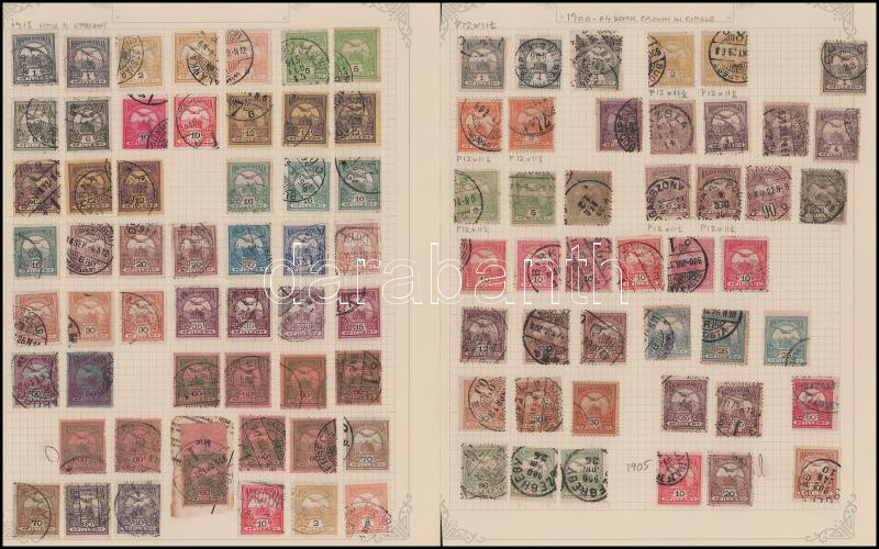Turul bélyegek 4 db albumlapon és 1 stecklapon régi gyűjtésből, közte szép színárnyalatok, olvasható bélyegzések, több mint 100 db bélyeg
