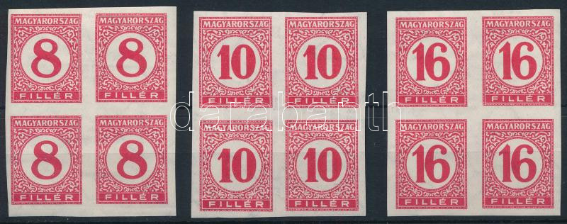 1929 Pengő-filléres portó II. 3 értékes vágott sor vékony papíron négyestömbökben (60.000)