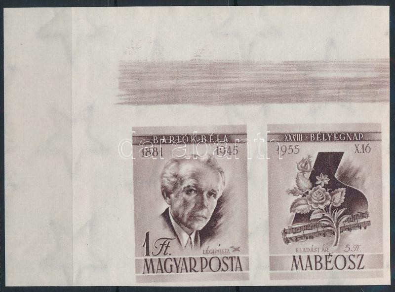1955 Bélyegnap (28.) Bartók Béla vágott bélyeg jobb oldali szelvénnyel (10.000)