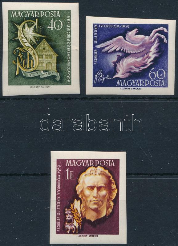 1959 Joseph Haydn és Friedrich Schiller 40f, 60f + 1Ft vágott értékek (40f törések, 60f ránc / folds, crease)