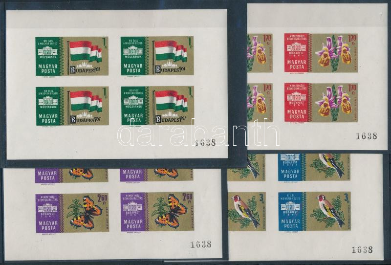 1961 Bélyegkiállítás (II.) arany vágott kisívsor azonos sorszámmal (20.000)