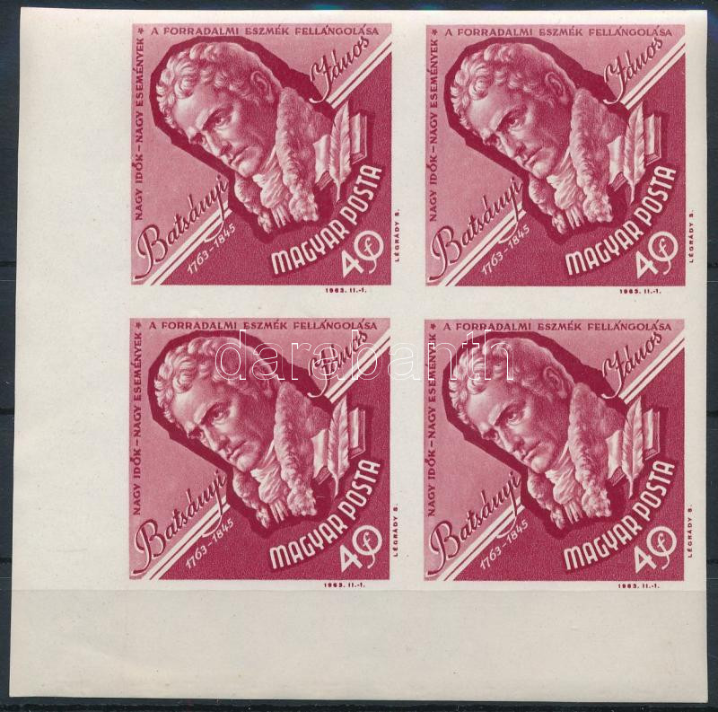 1963 Évfordulók (I.) Batsányi János 40f ívsarki vágott 4-es tömb