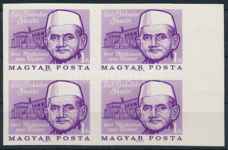 1966 Évfordulók - Események (IV.) L.B. Shastri ívszéli vágott 4-es tömb (6.000)