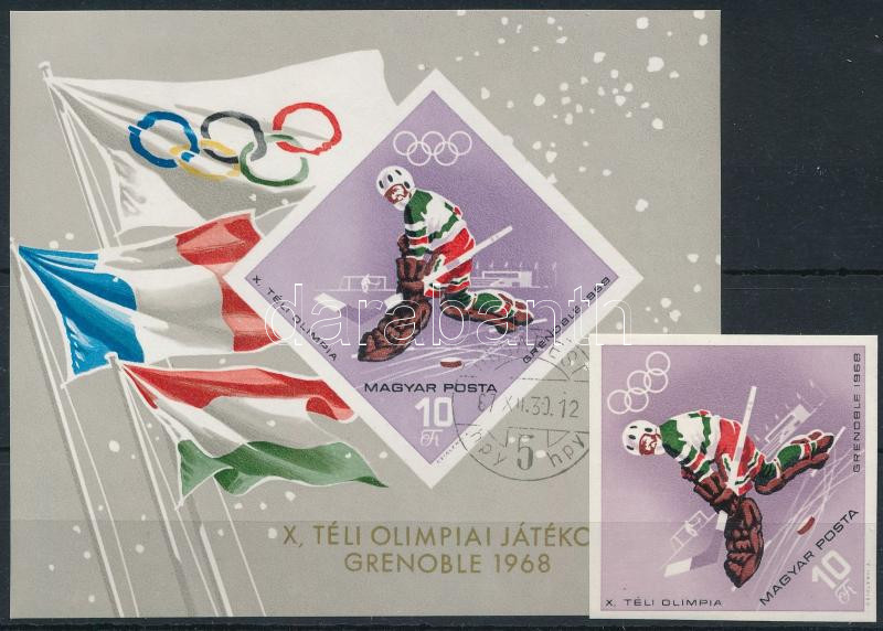 1967 Téli Olimpia (III.) - Grenoble vágott blokk + blokkból kivágott bélyeg (a blokk pecsételt / used blokk)