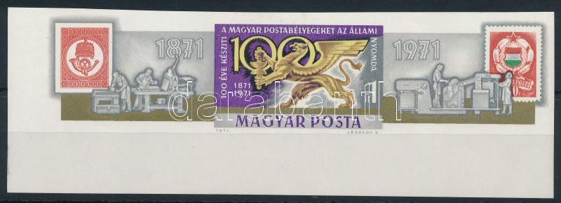 1971 100 éve készít magyar postabélyeget az Állami nyomda ívsarki szelvényes vágott bélyeg