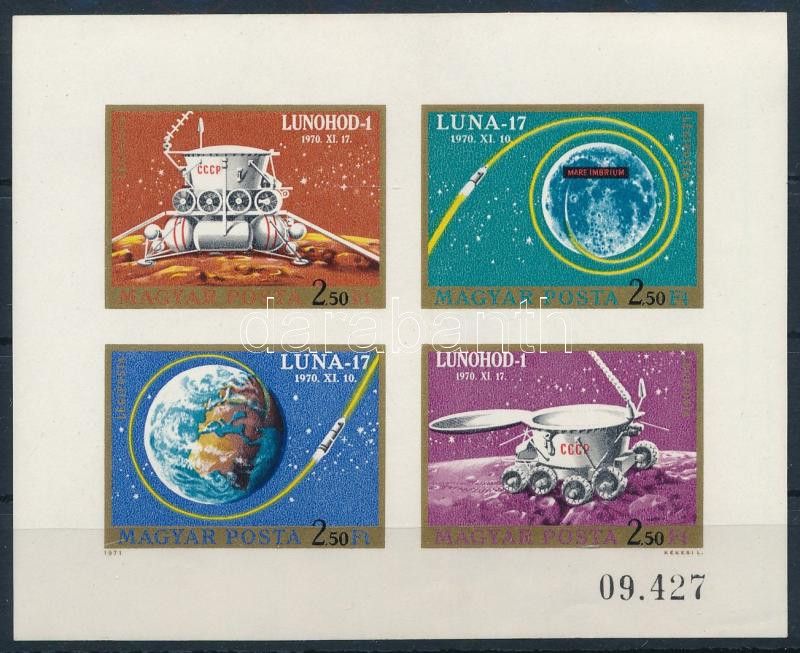 1971 Luna-17 - Lunohod 1 vágott blokk (gumihiba a kereten, enyhe saroktörés / gum disturbance, minor corner fold)