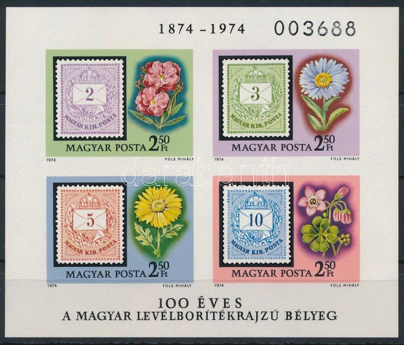1974 100 éves a levélboríték-rajzú bélyeg vágott blokk