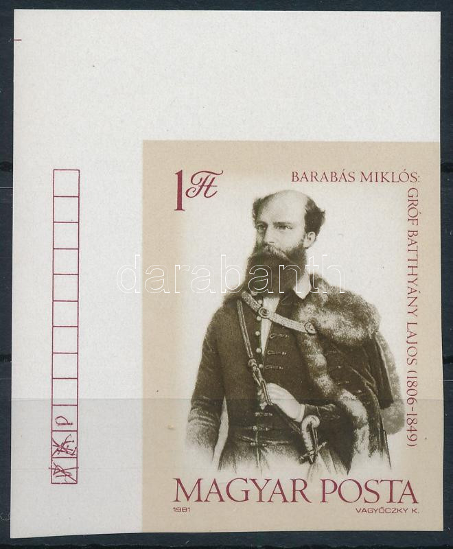 1981 Gróf Batthyány Lajos (I.) ívsarki vágott bélyeg