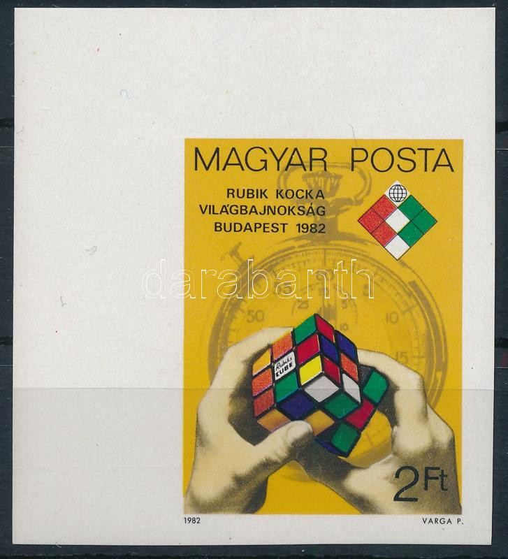 1982 Rubik-kocka VB ívsarki vágott bélyeg
