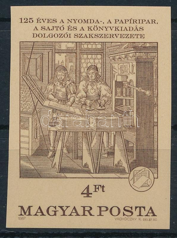 1987 125 éves a Nyomda-, a papíripar, a sajtó és a könyvkiadás dolgozóinak szakszervezete vágott bélyeg
