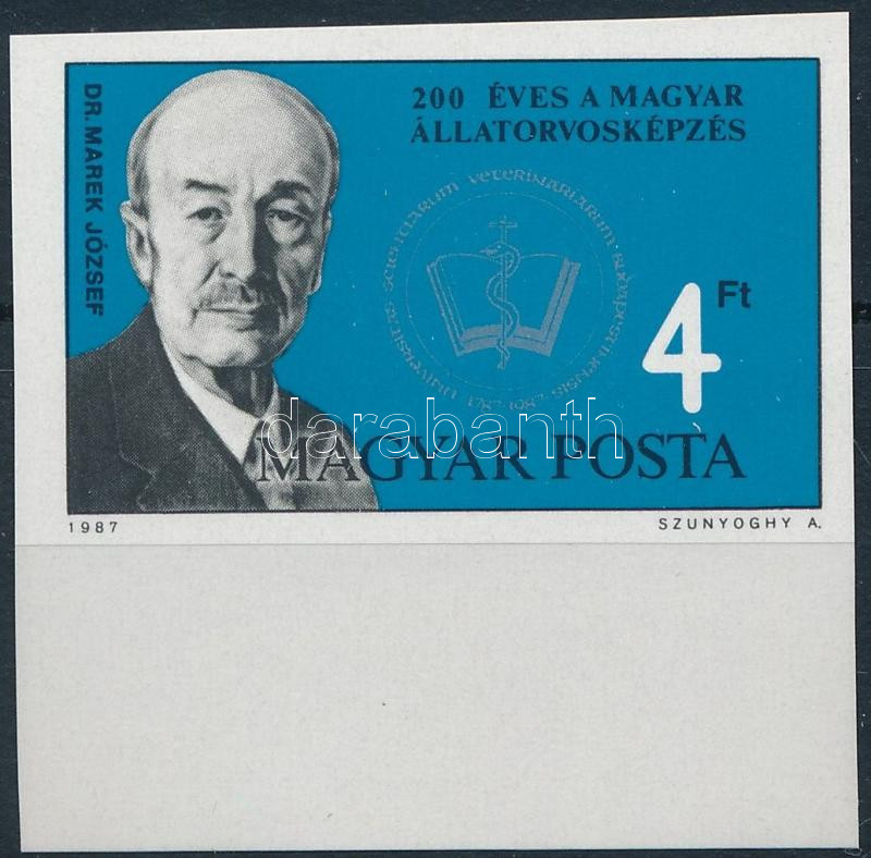 1987 200 éves az állatorvosképzés ívszéli vágott bélyeg