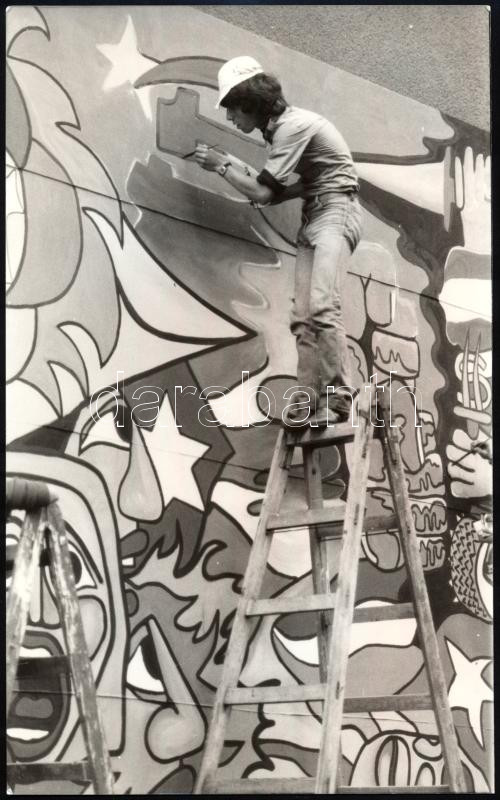 Jelzés nélkül: falfestmény készítés. vintage művészfotó 15x24 cm