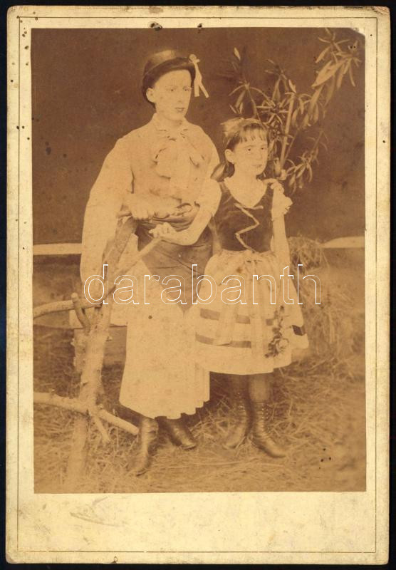 cca 1880 Erdélyi gyerekek népviseletben, keményhátú fotó, foltos, 16,5×11 cm