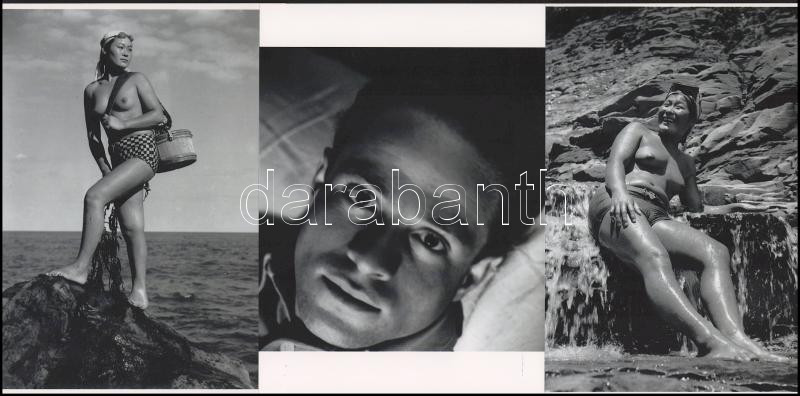 cca 1953 Haár Ferenc (1908-1997) magyar - amerikai fotóművész és fotóriporter felvételei (A tenger lányai c. sorozatból), + hozzáadva a művész fiatalkori önarcképe, 3 db modern nagyítás, jelzés nélkül, 21x15 cm