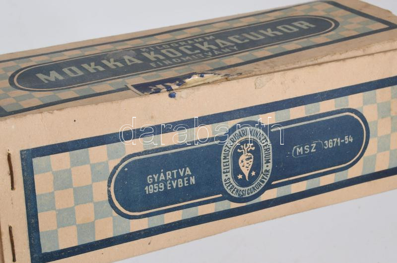 1959 Szerencsi Cukorgyár 1 kg-os mokka kockacukor doboz, 20x8,5x6,5 cm