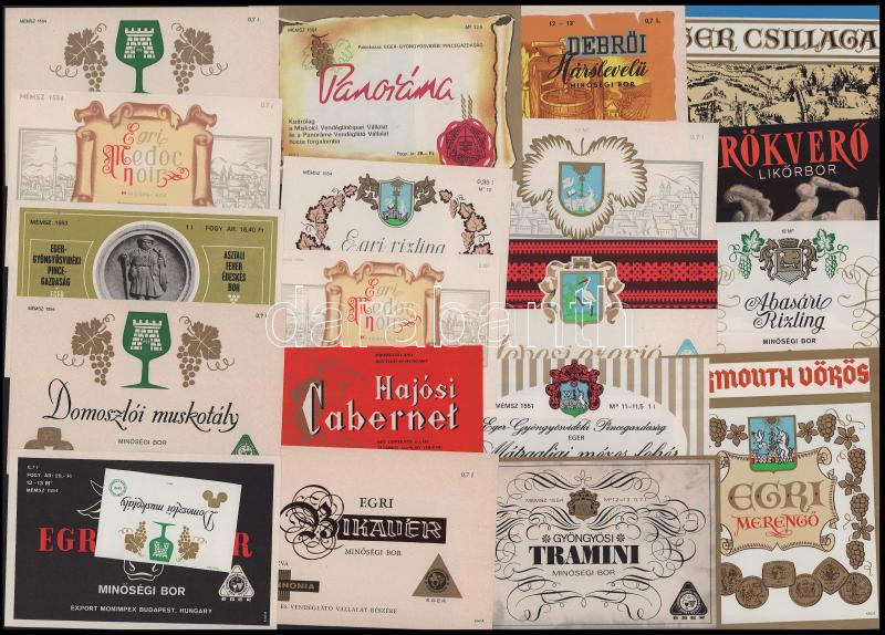 Vegyes italcímke tétel (Domoszlói muskotály, Durbints sógor, Egri Bikavér, stb.)
