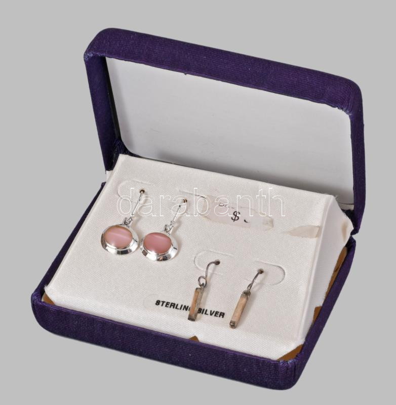 2 pár ezüst (Ag) fülbevaló, kő berakással, díszdobozban.