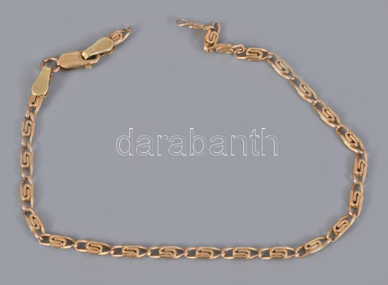 Arany (Au) s-pancer szemes karlánc, sérült, jelzett, 14k, 1,73g