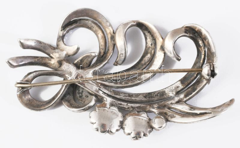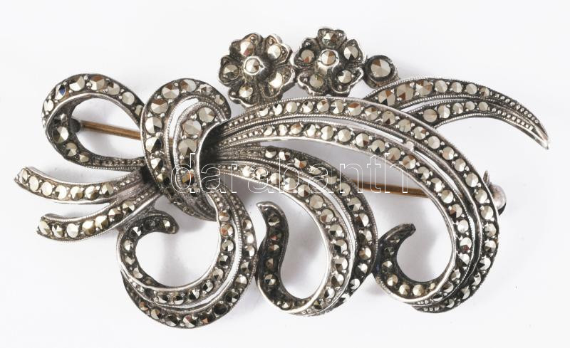 Ezüst (Ag) bross, markazitokkal, h: 5,5 cm, bruttó 11,3g