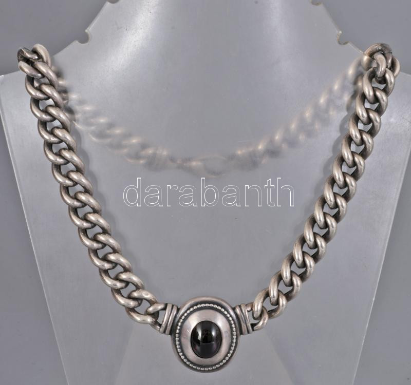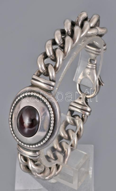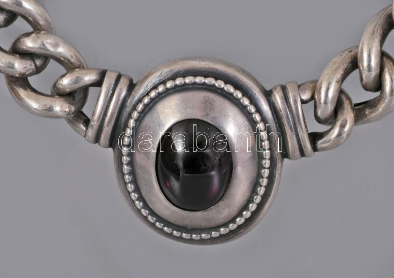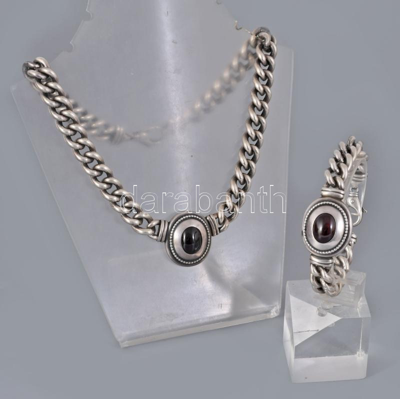 Ezüst (Ag) fonott karlánc és nyaklánc karneollal ékítve 925-ös ezüst, jelzett. 20 cm, 42 cm br: 116g