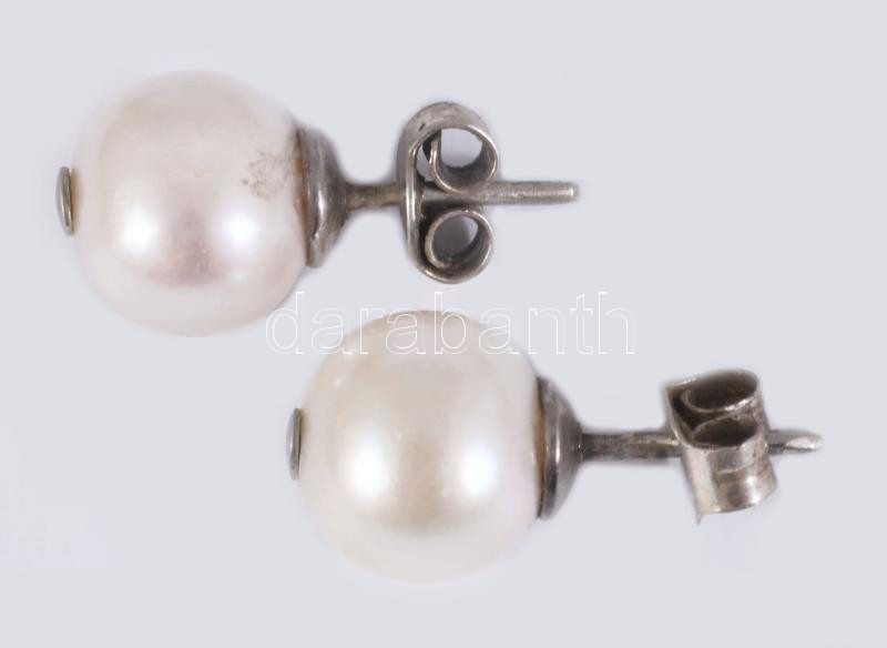 Ezüst (Ag) fülbevaló pár tenyésztett gyöngyökkel, bruttó 2,26g