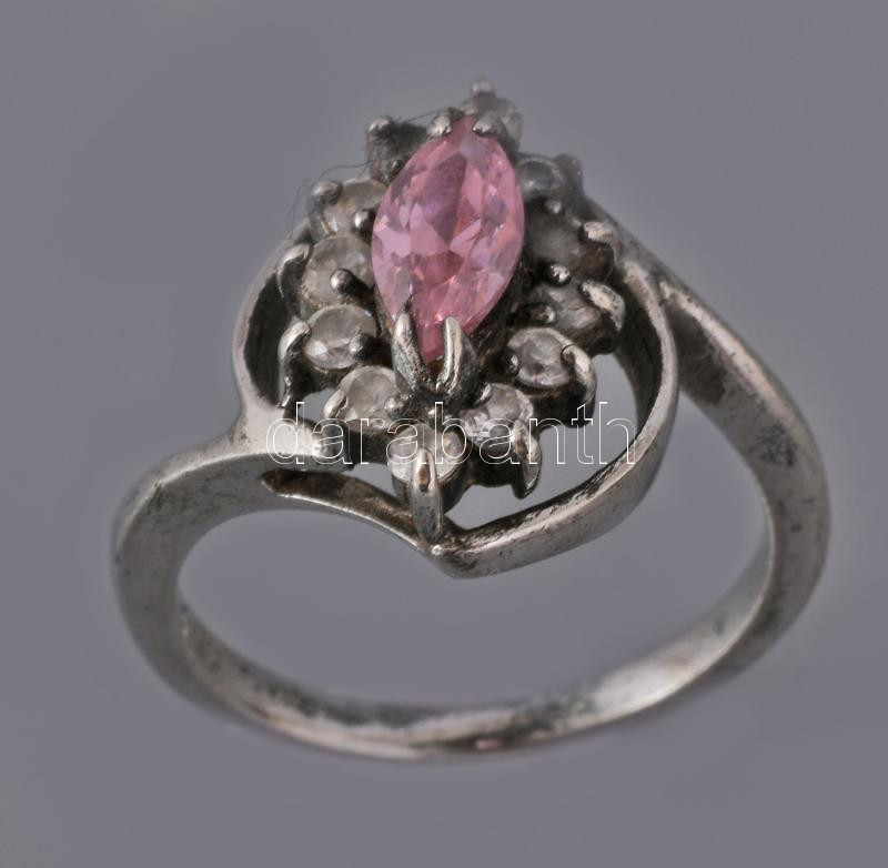 Ezüst (Ag) gyűrű kövekkel díszítve, jelzett, méret: 52, bruttó: 3,21 g